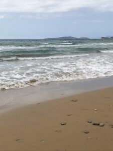 My hopes of swimming today are flung into the bushes with the great clouds of sea spray that are reaching up to the dunes! The Divine Feminine is hurling small tsunamis of water and sand around in her cosmic washing machine. She clearly has a lot of cleansing and purifying to do today.